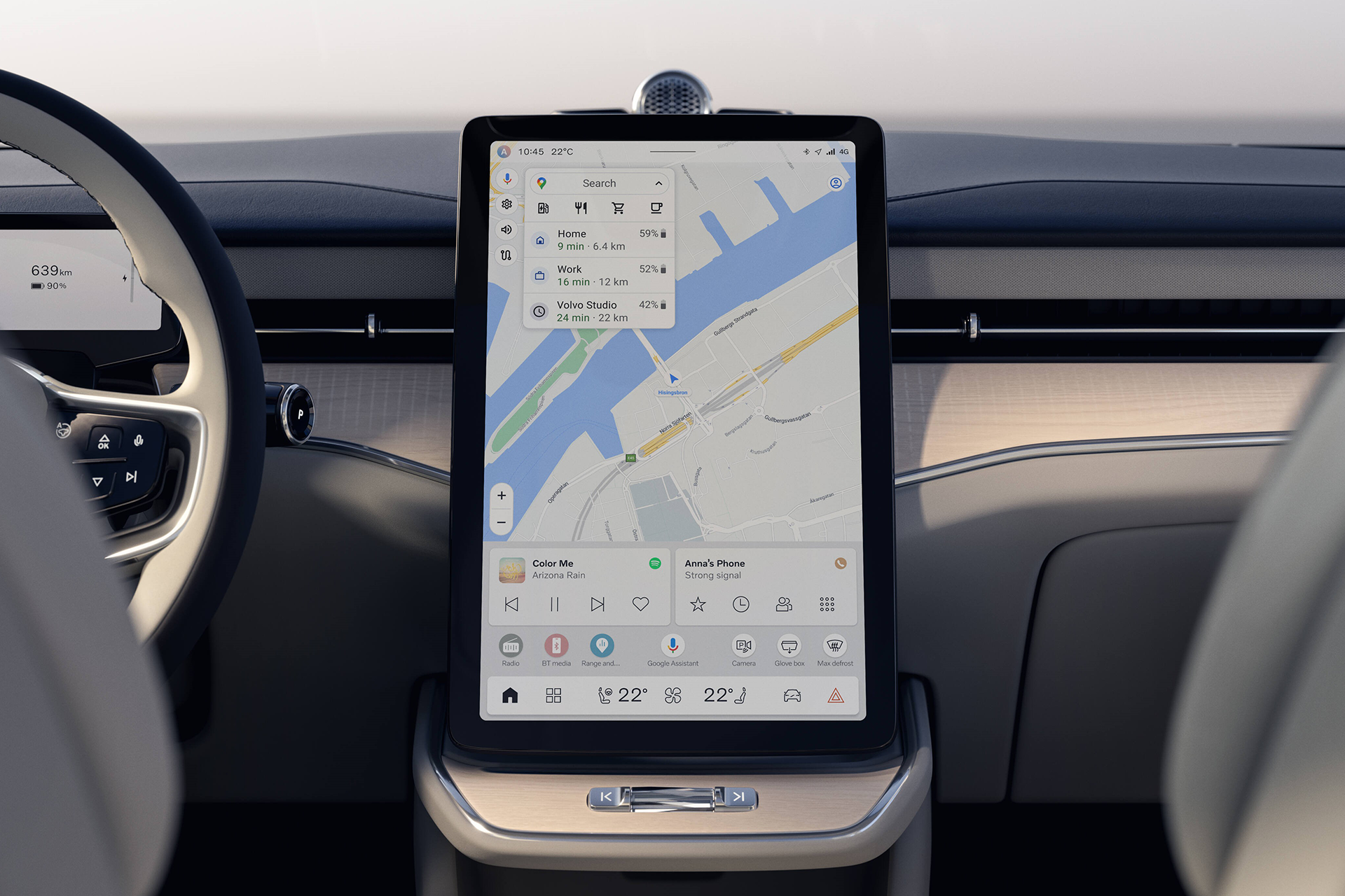 A large central display powered by Volvo’s next-generation infotainment system — developed with Google’s Android Automotive platform — anchors the dashboard. Voice interaction through Google Assistant, Apple CarPlay support, and over-the-air software updates ensure the experience remains connected and adaptive.